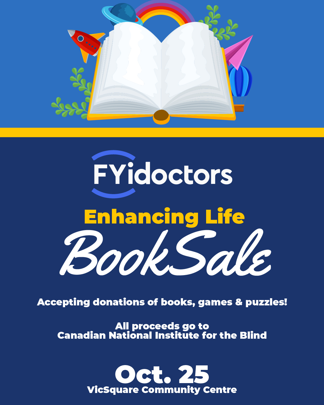 VicSquare Community CentreJoin FYI Doctors on October 25 for their Enhancing Life Book Sale in the VicSquare Community Centre! All proceeds go towards CNIB.