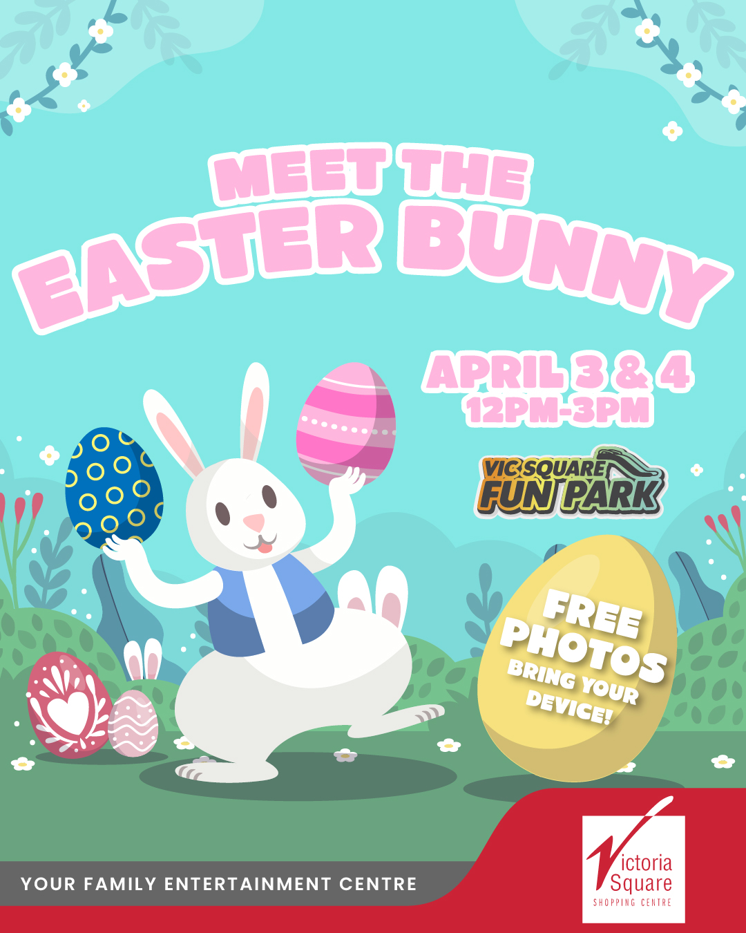 VicSquare FunParkHE'S BACK! π°π The Easter Bunny returns to VicSquare for a hoppin' good time! Catch a free photo with him at the Easter Photo Booth beside VicSquare FunPark! πApril 3 & 4, 12pm-3pm